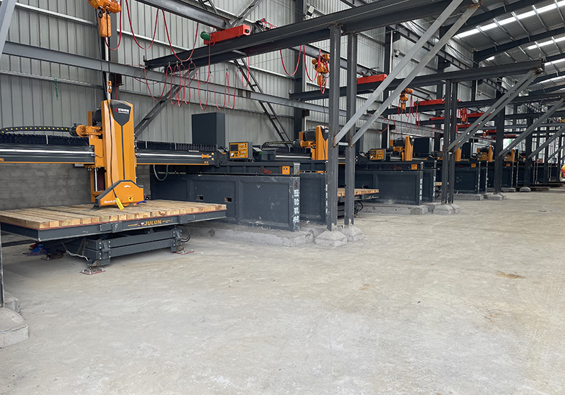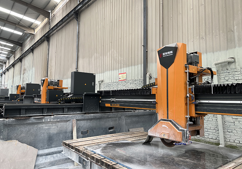 该机采用(yòng) PLC 可(kě)编程系统和人机操作(zuò)界面,辅以高精(jīng)度旋转编码器定位及红外标線(xiàn)仪。左右走刀(dāo)采用(yòng)变频器控制,加上结构优化升级,左右走刀(dāo)速度可(kě)大大提升,提高产(chǎn)能(néng);上下升降采用(yòng)液压升降,结合厚镀铬导柱+耐磨导套,配合间隙小(xiǎo),耐磨精(jīng)准;主轴箱配套优化升级,可(kě)兼容高转速;关键部位均采用(yòng)进口零配件,因而具(jù)有(yǒu)切割效率高、切割精(jīng)度高、稳定性高、操作(zuò)简便等优点,特别适用(yòng)于花(huā)岗岩、大理(lǐ)石、岩板等板材的切割。